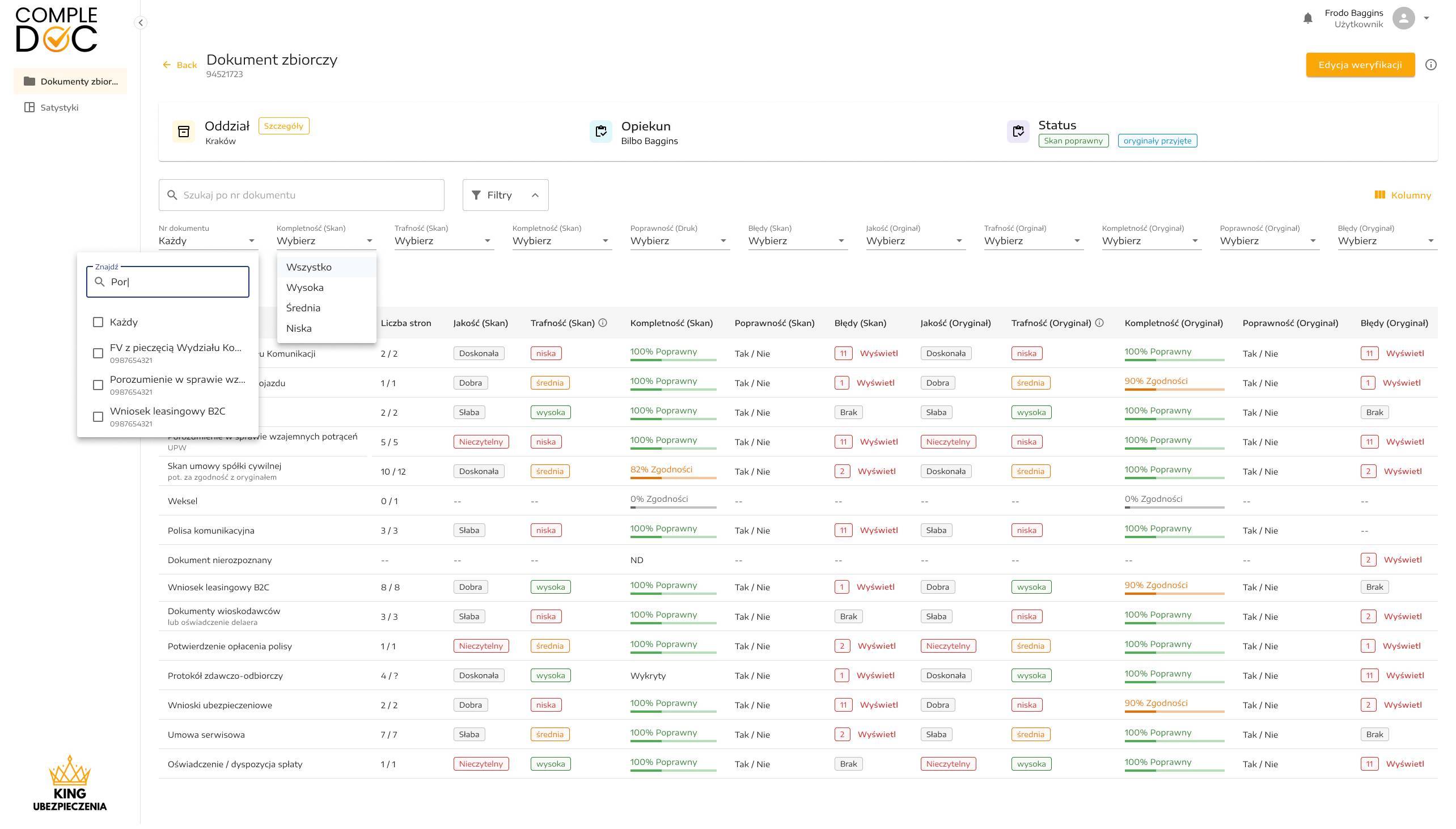 Rozpoznawanie i klasyfikowanie dokumentów przy użyciu sztucznej inteligencji, w tym odczytywanie elementów takich jak podpisy, numery umów, Reguły kompletności i poprawności: Ustalanie warunków wymaganych do uznania dokumentów za kompletne i poprawne, np. obecność podpisów, zgodność kwot czy liczebność stron.